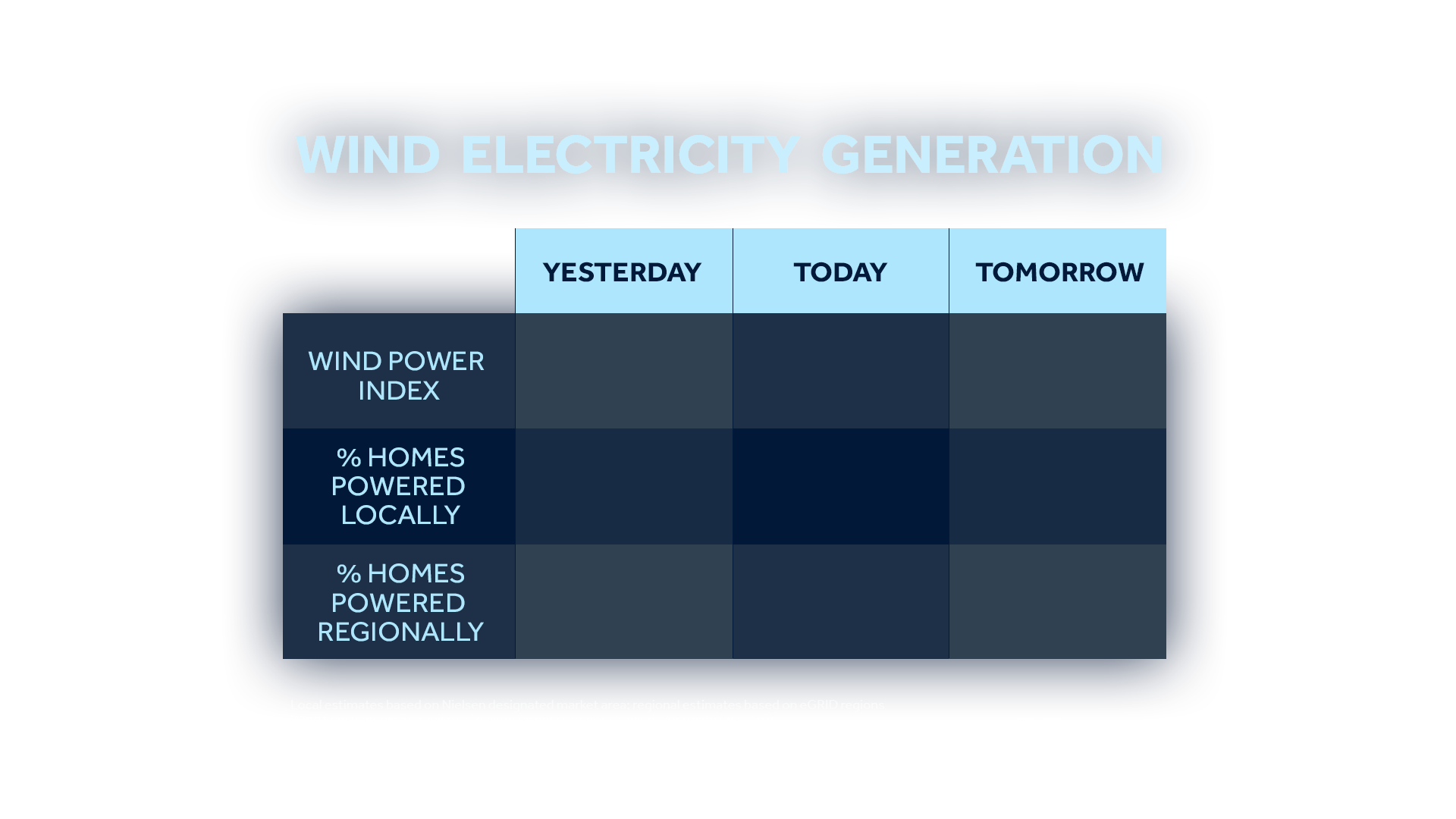 To further distill the impact of weather conditions on electricity generation, the tool reports a daily Solar Power Index (SPI) and a daily Wind Power Index (WPI). Inspired by the popular UV Index, it ranks the suitability of the weather conditions for generating wind or solar electricity on a scale from 0 to 10.